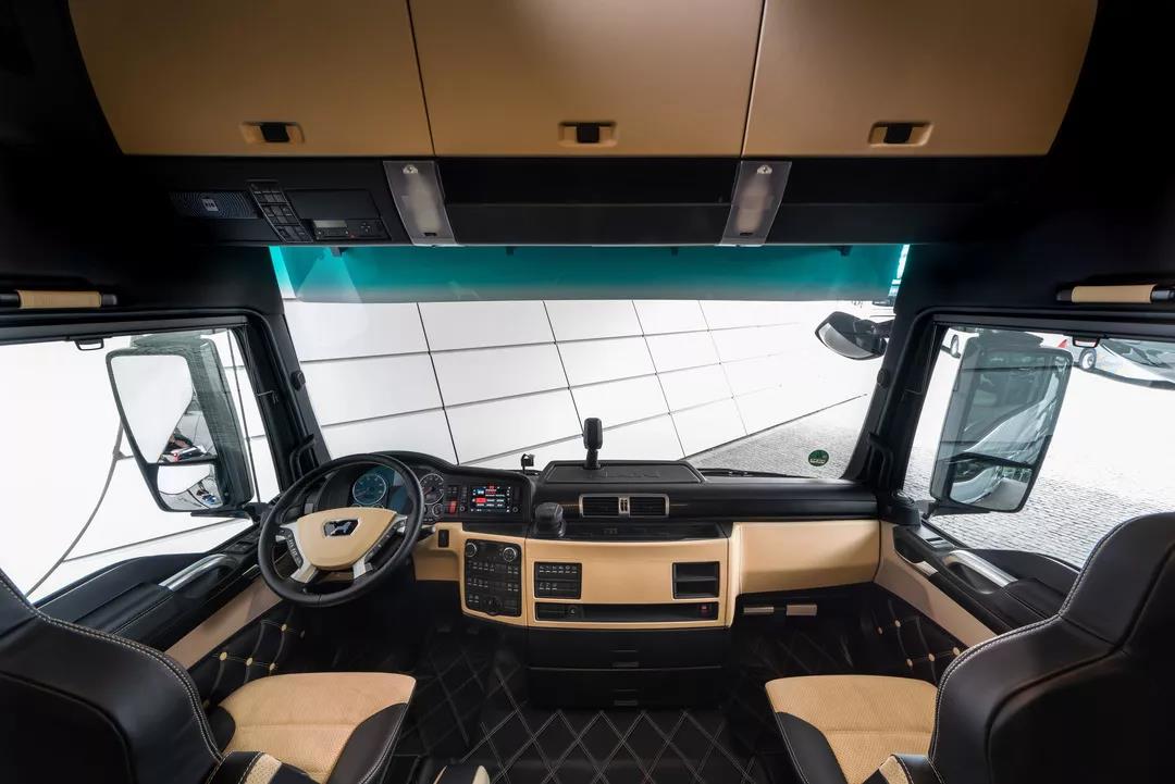2017年底TG系列卡车进行驾驶室内部性能升级并在2018系列中得到体现,使得驾驶员的工作和生活可以获得更好的舒适性。新的驾驶室内饰设计根据应用目的和驾驶任务进行了优化,其中,短的C和M型是基础型驾驶室,主要以短途运输为主。与此同时,驾驶员也能从重新设计了起居区的L、LX、XL、XLX、XXL加长驾驶室中获益,这些驾驶室主要用于TGX和TGS车型。