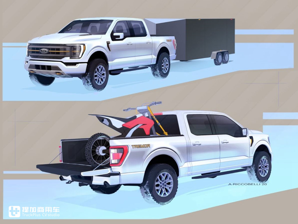 Tremor本质上是一个选装包,可以使F-150在实现越野的同时保持其核心功能。在F-150中,Tremor定位于FX4和Raptor之间,配备了1676mm长的货箱和SuperCrew驾驶室。
