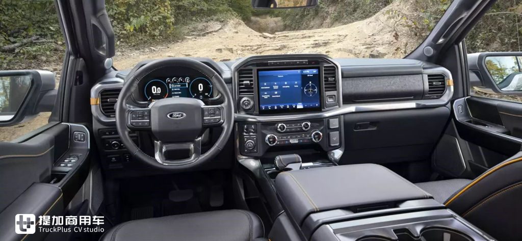 Active Orange主题在F-150 Tremor体现的淋漓尽致。它反映在座椅、中控台和车门上的针脚上,甚至仪表板也有橙色高光。