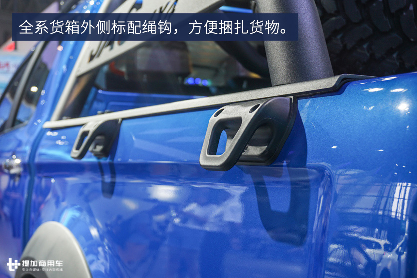另外货箱外侧左右各2个挂钩也是全新标配,小小的挂钩造型硬朗,和整车外形很搭。皮卡与普通小车不一样的地方就在于后面有个小货箱,拉人拉货两相宜。T8的货箱内部尺寸在同级别中不算小,并且全系都标配货箱宝,就是货箱内部喷涂了黑色防刮涂层,新车买回家不用改装就能直接拉货,不怕刮花油漆。