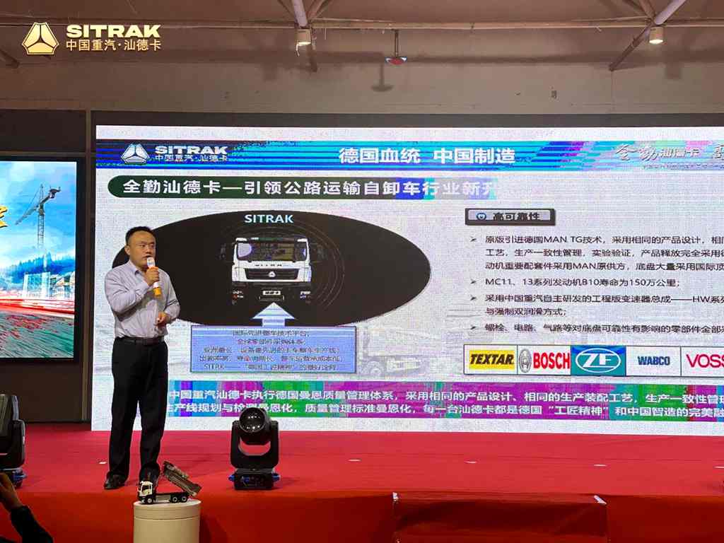 针对用户最关心的行业法规及产品问题,汕德卡工程车部经理分别从国家政策法规、产品性能优势两大方面进行详细讲解,让现场用户对汕德卡工程车有了更深入地了解,对未来行业发展有了更清晰的认知。