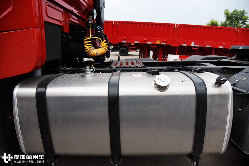 较为有趣的是三一卡车的油箱设计颇为与众不同,具销售介绍,油箱形式为700升加100升,主副油箱是一个整体。主油箱容量700升,可加注0#柴油,副油箱容量100升,在冬季时可加注-10#或-20#柴油。可想而知,副油箱被设计成这样,主要是应对冬季燃油问题,老司机都知道,-10#柴油不仅在价格上比0#柴油贵,而且不耐烧。如此的油箱设计,主油箱加注0#柴油,通过管路加热器加热,为发动机供油,而副油箱可加注-10#柴油,只是用于启动车辆,可有效节约燃油成本问题。可以看出,三一卡车这个设计,是做了市场调研的。