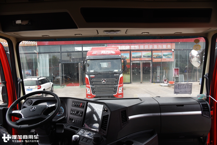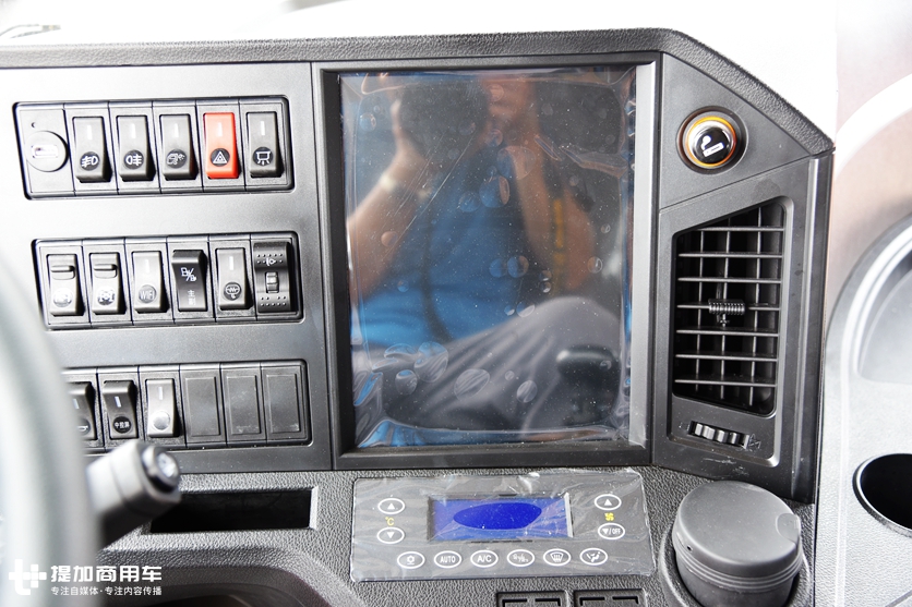 中控台中规中矩,谈不上惊艳,但还是以驾驶员为中心,包围式设计,把所有功能按钮集成在驾驶员位置,方便驾驶员操作。中控台上镶嵌的一块10寸液晶屏比较抢眼,在我的印象中,除了特斯拉和众泰,三一卡车应该是独树一帜了。