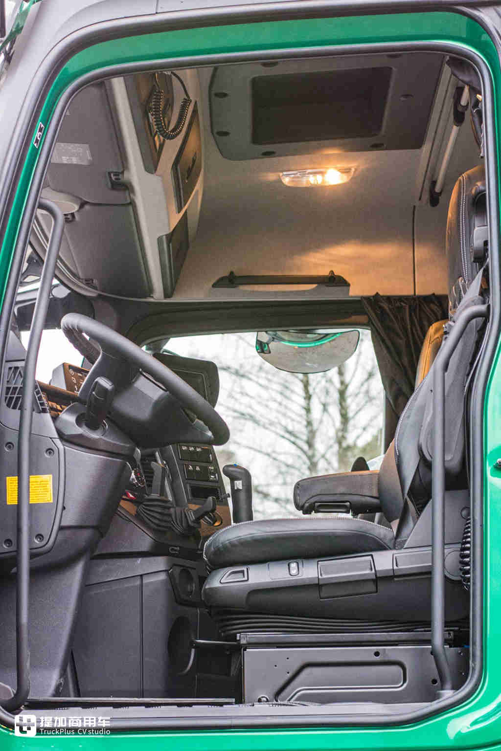 除此之外,驾驶室的其他部分和Arocs保持了基本一致。车门、扰流板、后视镜都是原汁原味的Arocs风格。