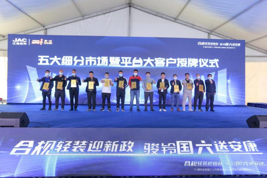 发布会上,江淮轻型商用车营销公司骏铃营销公司总经理助理刘伍致辞,他表示,坚守初心,从产品、技术、品牌、服务等方面全面满足新市场环境下客户的个性化,差异化需求,是中国骏铃持之以恒的追求!面对蓝牌新政的改革,国六排放的实施,骏铃全“芯”出发,携五大细分市场全系国六车型和全新开发合金铝上装,助力冷链、商贸、绿通、快递快运、物流行业,致力为客户提供不同场景下的细分市场解决方案,解决运输痛点,创造全面价值,更进一步推动中国高效物流不断向前!