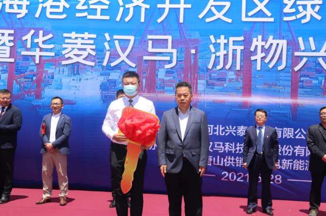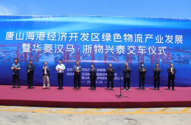 5月28日上午,在唐山海港习习海风中,“唐山海港开发区绿色物流产业发展暨华菱汉马·浙物兴泰交车仪式”顺利举行。汉马科技集团向浙物兴泰物流基地(以下简称浙物兴泰)交付了30台华菱汉马电动重卡,为推动整个临港物流行业运输车辆绿色化、电动化、智能化起到了良好的示范作用。