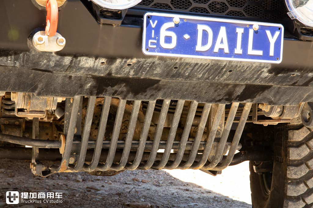 为了保护车辆的机械结构,依维柯还在发动机底部加入了防护网,将稳定杆等传动系机械组件全包在内,防止撞击受损。由于采用了更加陡峭的角度设计,车辆的接近角受影响不大。依维柯表示,该车的接近角达到了48度。