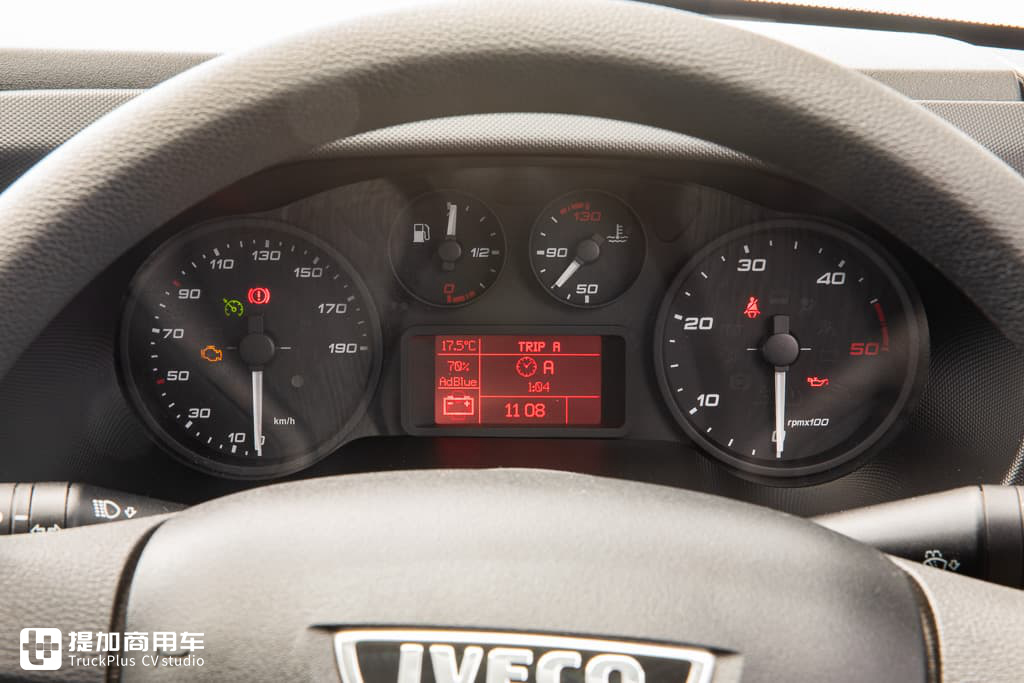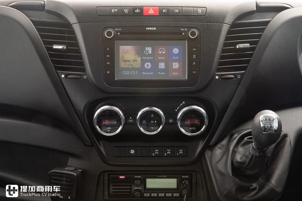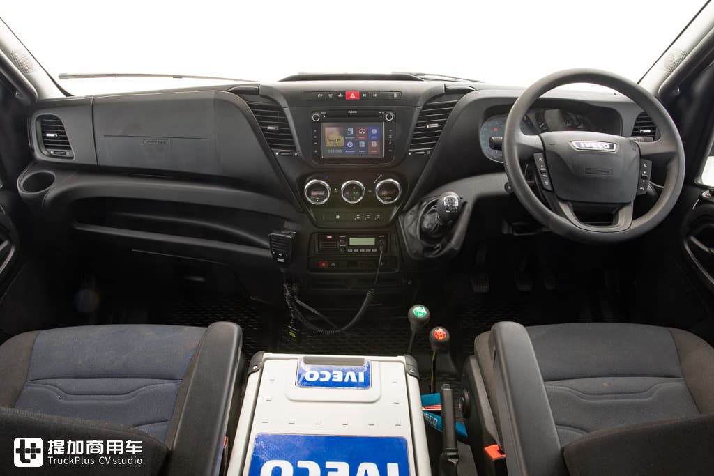 车辆的内饰就是典型的依维柯Daily内饰,国内销售的南京依维柯欧胜也在使用这套内饰系统。多功能方向盘和中控彩屏都有所搭配。