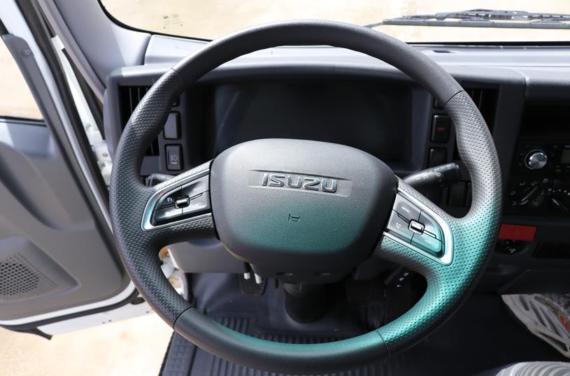 实拍车辆为庆铃铃咖经典内饰配置,车内配有电动门窗、液晶仪表和多功能方向盘。方向盘的造型是庆铃五十铃家族经典的两幅式设计,上面带有定速巡航和蓝牙电话功能,方向盘支持两段四方向机械调节,适应不同人员的驾驶姿势。