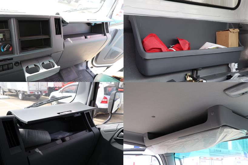 车内储物空间随处可见,驾驶员可以对票据、证件、工具、书本等物品进行规范整理收纳,在工作台上还设有隐藏式的杯架,直接拉出来就能用。