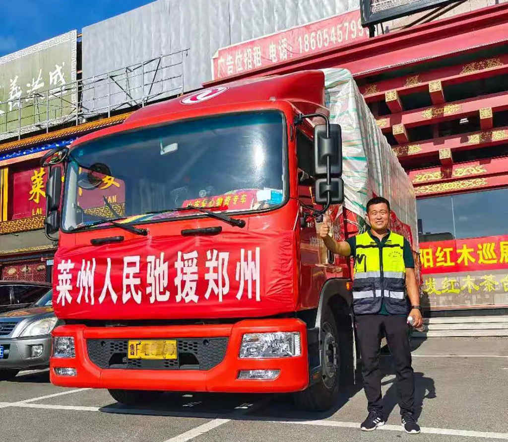 7月27日一大早,他驾驶着自己的东风多利卡D9,带着莱州“搭把手”团队的救援物资,正式出发前往河南新乡。在被问起为什么愿意免费运送物资时,柳丰喜却表示:“这没什么,我们东风卡友群里很多人都说要去,好些都报名了‘搭把手’的志愿者,你像老邹去年年底才换的D9,新车行驶还不到到1万公里,也说要去河南,大家都很热心。”这群卡车司机平时除了在群里分享生活点滴、政策优惠信息、用车心得,还会组织一起参与公益行动。