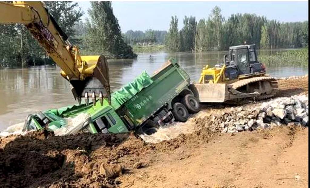 当卫河决堤洪水如猛兽向牧野大地扑来,为堵住缺口,一台台装满石头的陕汽重卡投入河中,场面令人动容,在解放军和人民群众不眠不休的奋斗中终于堵住了洪水缺口,全市人民终于松了一口气。