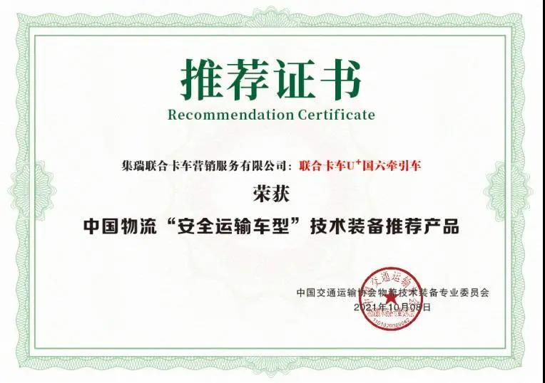 会议以“智能技术装备赋能新物流”为主题,在对货运物流行业未来进行深入探讨的同时,更对行业内出现的优秀企业,优秀产品进行了表彰。联合卡车凭借问世以来展现出来的卓越安全性,获得了与会嘉宾的一致认可, 旗下U+国六牵引车更是获得了中国物流“安全运输车型”技术装备推荐产品的殊荣!