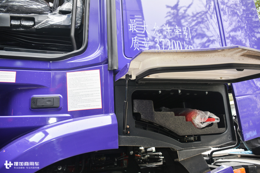 外观要讲的东西不多,此批车是中通快运制定车型,颜色跟随企业形象为紫色。在这需要多讲两句中通的事,在我们印象里中通企业形象一直都是蓝色,怎么会选紫色的车呢,关键词在于“快运”与“快递”。我们所熟知的中通快递业务确实是使用蓝色的形象标识,他们采购的车型也都是蓝色。