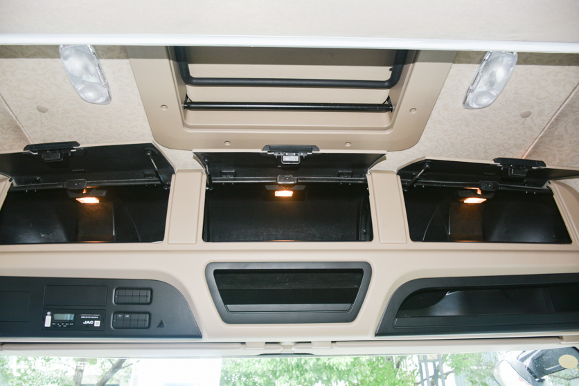 车内就是顶部3个储物箱,每个箱门都是液压撑杆,内部有灯。比较讽刺的是,这种理所应当的东西很多车型都做不好,做不到位。