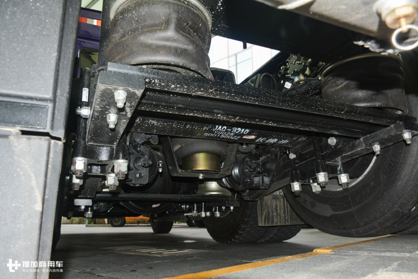 匹配采埃孚EcoSplit 4代手动变速器,型号16S2530TO,最高挡为超速挡(1:0.84)。后驱动桥为方盛459桥,速比3.36,经济车速在80-90km/h,比较适合快运的运输要求。