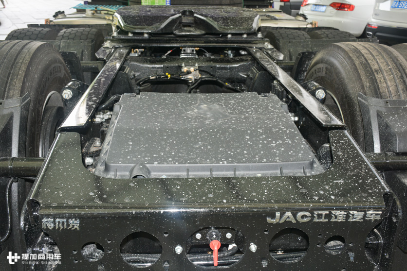 为了给油箱让位,底盘左右两侧所剩空间不多,蓄电池位置改动到车架尾部。很高兴在越来越多的国产车上看到这样的紧凑设计,有时候油箱容量大不仅仅是大而已,背后涉及的还是整个底盘的布局,600升和1200升对底盘布局的考验完全不同。