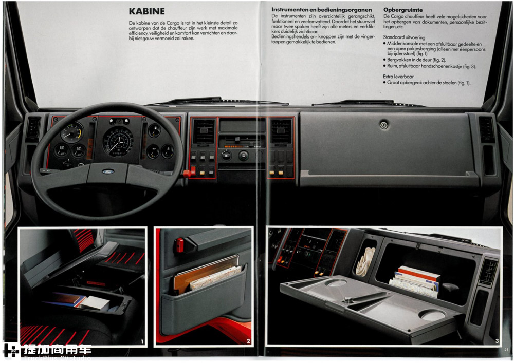 最后,附上一张经典的Cargo内饰宣传图。平直的设计,简单易用的按键,整齐的排列,处处都戳着理工男的审美G点。至今,福特Cargo的故事已经走过了40年的风风雨雨。虽然已经消逝于江湖,但经典将永远活在人们的心中。感谢您阅读本篇文章!还想看到更多有趣有料的商用车内容,别忘了关注提加商用车网哦!