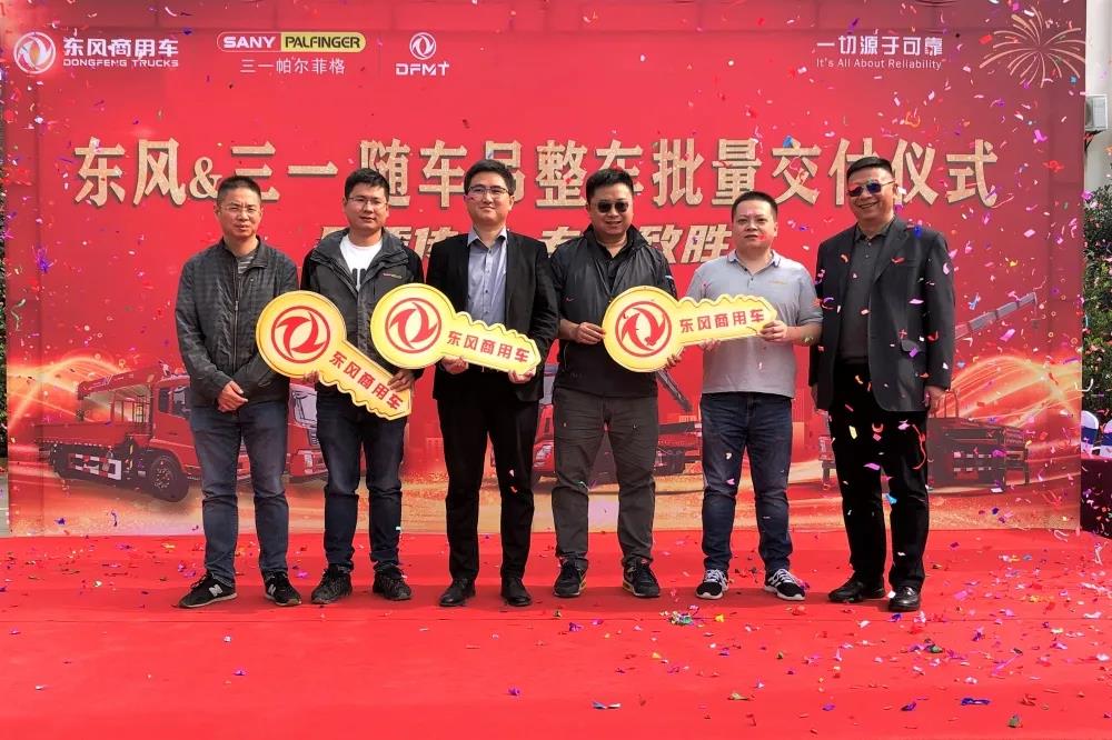 10月28日,东风&三一随车吊整车批量交付仪式在湖北十堰举行,东风商用车将 36 辆随车吊一体化整车交付给三一帕尔菲格特种车辆装备有限公司。仪式上,东风商用车、三一帕尔菲格、东风汽贸三方签订战略合作协议。