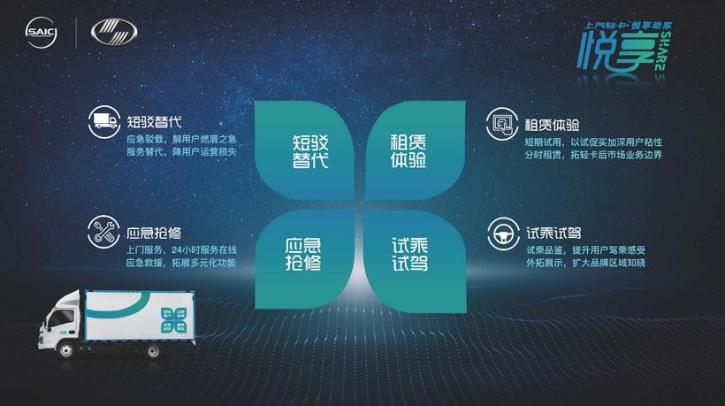 活动当天,上汽轻卡正式公布了轻卡行业首个用户品牌“悦享”,开创业内首个集“购车、用车、分享、体验、共创”于一体的终端营销模式。依托数字化工具,厂家将直面用户,打通用户与平台、服务、车辆以及用户之间的壁垒,打造更便捷的选车、用车体验,引领轻卡行业用户体验与服务方式的创新变革。