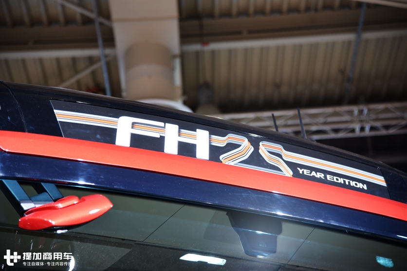而在车身一侧,FH 25标识从前面贯穿至最后,并且25数字设计成丝带一样的样式。另外,FH 25铭牌也被贴在车身一侧,上面印有 25周年字样。而在另一块金属铭牌上,印有沃尔沃引以为豪的I-Shift变速器标识,以及540马力标识。。