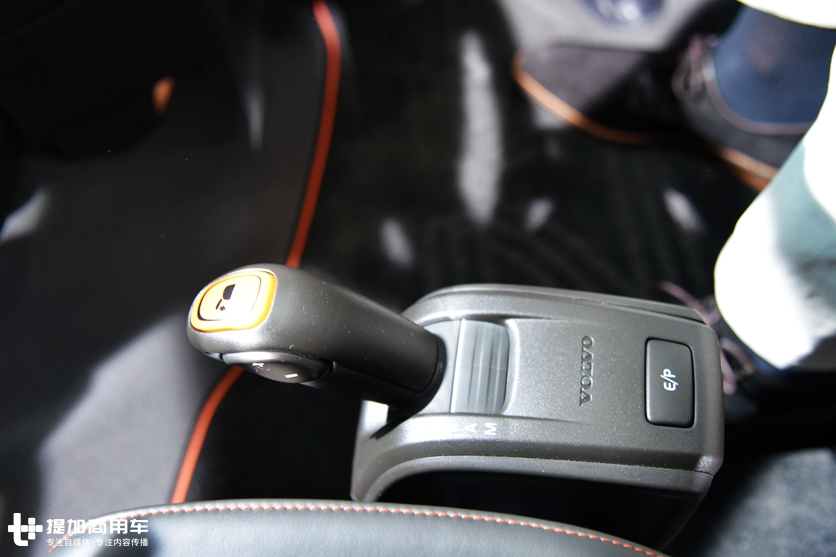 位于座椅一侧的就是I-Shift变速器操作杆了,这个档位操作杆的样式万年不变,在沃尔沃所有车型上,都是这个样子。原因很好理解,这个档位操作杆确实好用又顺手。不同于其它车型,这个操作杆融入了25周年元素,操作杆一端换成了黄色的盖子、