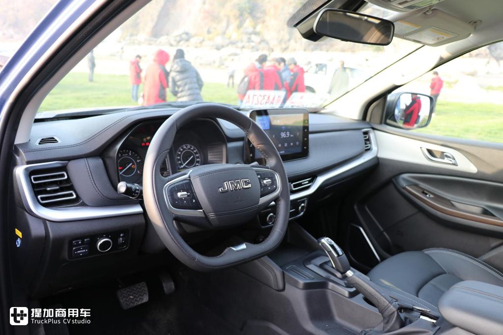 现在的皮卡在内饰方面已经可以说是今非昔比了,江铃域虎7的内饰设计如果不说是皮卡的话,可能很多人会认为这是一辆SUV。车内两幅平底的多功能方向盘、一键启动、银色拉丝贯穿饰条、对称钢琴漆出风口、软包仪表台等等,极富现代化与运动感。