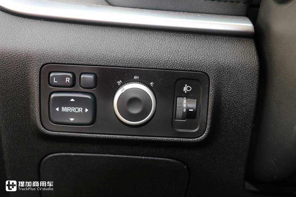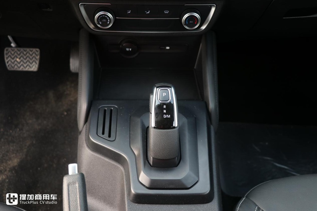 江铃域虎7可选配自动挡变速箱,这一点是要优于市面上的绝大多数皮卡,挡位操作机构为电子挡把,按住解锁轻轻推拉便可实现档位切换,挂入D挡后还可以配合换挡拨片对变速箱进行手动干预操作,操作更加简便灵活。