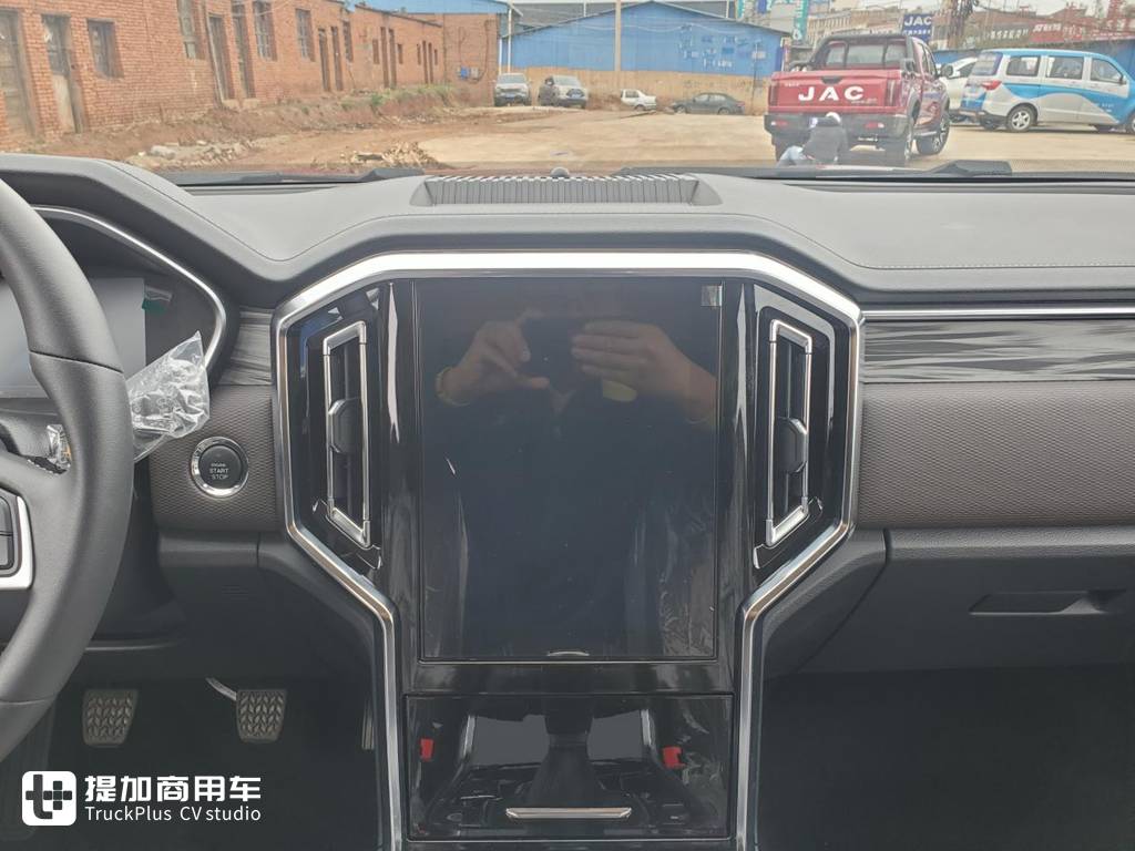进入第四代车型之后,皮卡也会更多的偏向乘用车化,在内饰方面便能明显感觉到。江淮悍途皮卡的内饰看着更像是一个大型SUV的感觉,对称式的设计与大量的木纹、软包装饰看着格外美观。