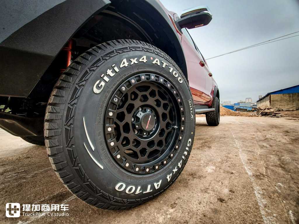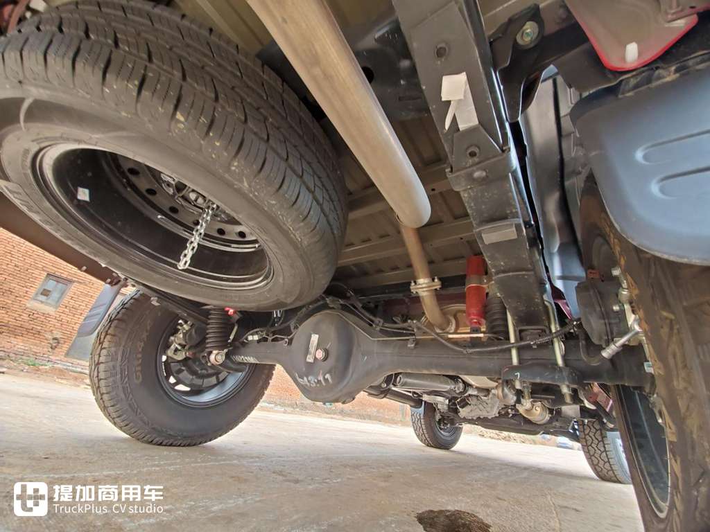 车辆底盘采用博格华纳电控分时四驱系统,搭配伊顿差速锁,后硬桥设计,接近角30°,离去角23°,纵向通过角26°,214mm超高离地间隙,最高涉水深度1.2M,通过性能更强,轻松应对各种路况。