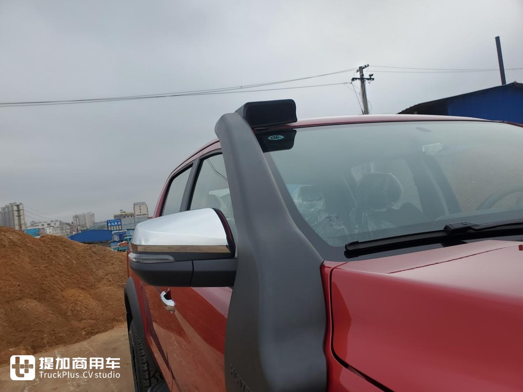 原厂配备的高位进气装置则是方便穿越玩家,在遇到河道的时候高位进气可以保障水不会进入进气道内,接近2米的进气高度避免了发动机进水引发的熄火或是顶连杆的情况。