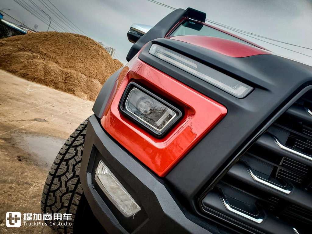 悍途采用了全新牛头造型前脸,霸气粗犷。鲨鱼齿进气格栅,彰显粗犷机甲风,凌厉刚猛,把硬汉美学演绎得淋漓尽致。黑色磨砂装饰的使用,与红色车身形成了鲜明的对比,穿插搭配的美感由内而发。
