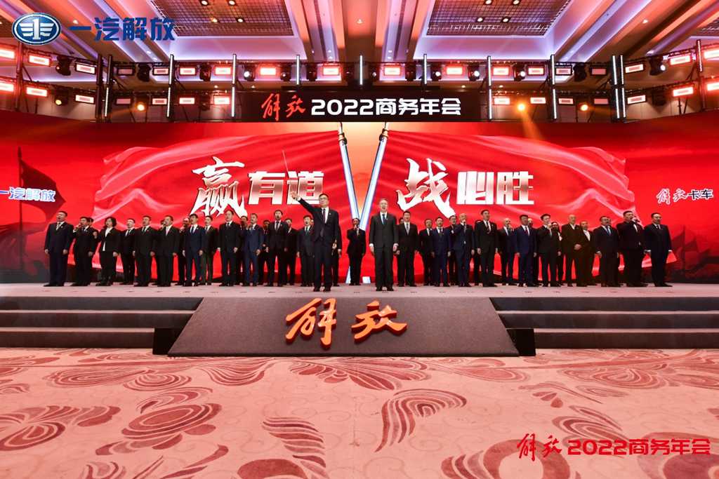 2021年12月29日,以“驭势向变 创领价值 拓局克艰 共捍荣耀”为主题的解放2022商务年会在新中国汽车工业的摇篮、一汽解放的大本营——长春隆重召开。一汽解放领导班子成员,以及来自全国各地的解放经销商、服务商、备品经销商、专用车企业和合作伙伴,媒体朋友携手相聚,并以“百城、千店、万人”齐聚云端的形式共享盛会。共享解放2021年的荣耀战绩,共谋一汽解放2022年发展大计。