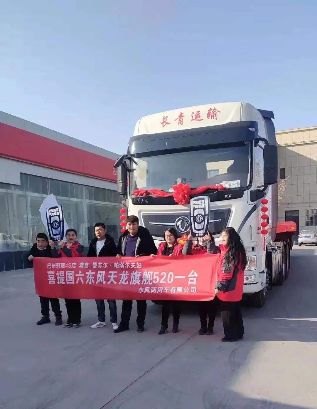 新春将至,卡友们过节最重要的就是拥有开(K)心(X)啦!1月29日东风商用车巴州冠亚4S店,曼苏尔·帕塔尔&买买提·努尔东一起将一辆东风天龙KX接回家。