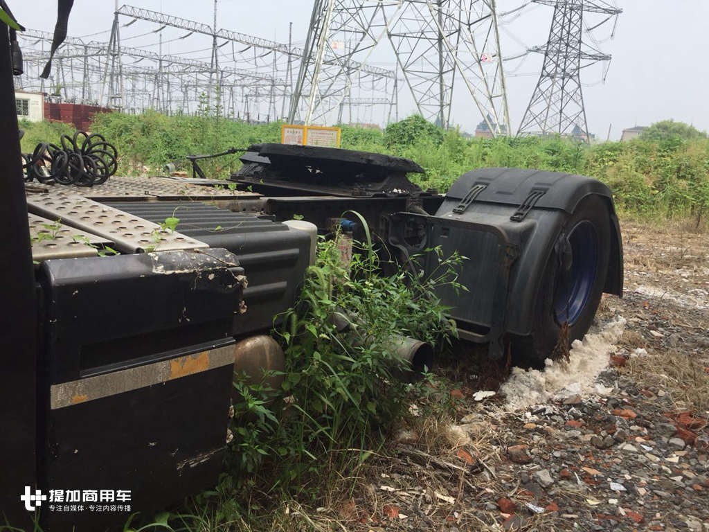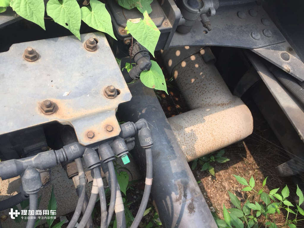 从这个角度,隐约看到两个气囊的轮廓,虽然国内目前很多干线物流运输车有一部分已经采用这种模式,但遥想十多年前,无论是进口车还是国产车匹配这种悬挂的品牌少之又少。那个年代能匹配这种悬挂,真的有一种鹤立鸡群的感觉。