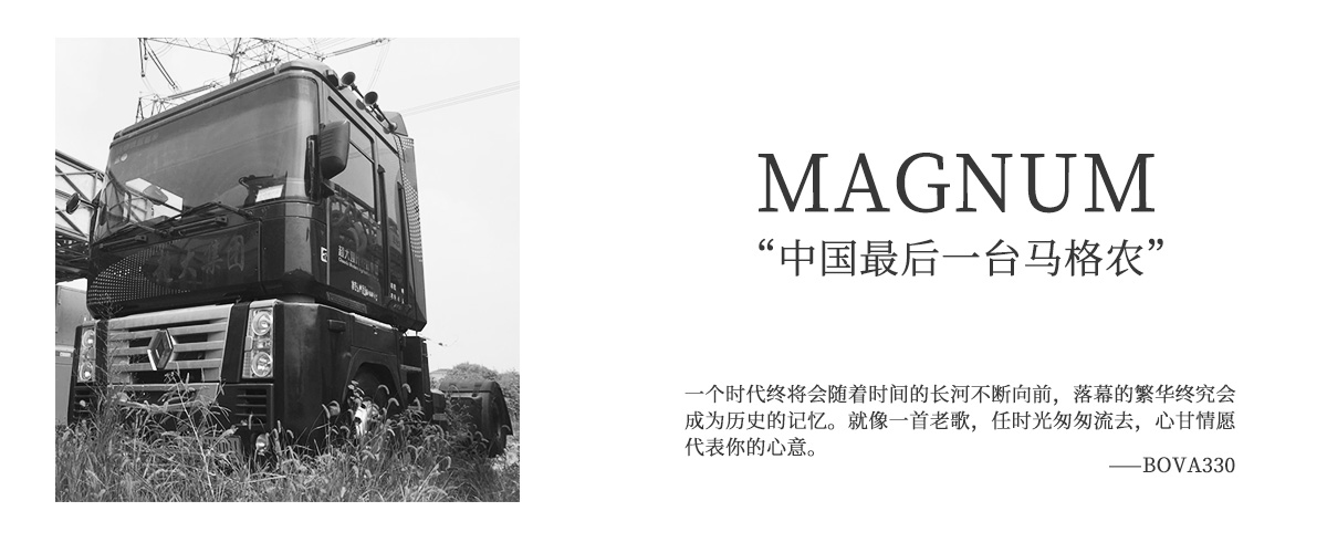 一个时代终将会随着时间的长河不断向前,落幕的繁华终究会成为历史的记忆。就像一首老歌,任时光匆匆流去,心甘情愿代表你的心意。2012年12月13日“雷诺卡车”正式归属“沃尔沃商用车”大家庭一员,资源共享,平台共建,共同撰写新的历史篇章。花无百日红,车无再少年!2013年6月26日,最后一台马格农-VEGA-DXI-500P交付客户后, “大方头”的时代彻底宣告终结,并以此迎接新款车型的诞生—雷诺T系列!草丛里的这台“老马”是目前国内唯一一台,其中的一部已经于2011年的事故中退役,另外一部已经拆解运至第三世界国家。曾经国内的三剑客转眼间,客走他乡,毕竟新事物的产生终究伴随着着旧事物的离去,忆往昔一个时代,下一个时代必将更加精彩!