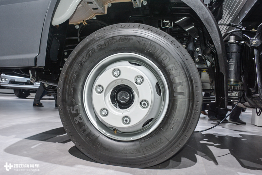 轮胎是国产轻卡、中卡不常用的235.75R17.5真空胎,配置比较偏欧卡。