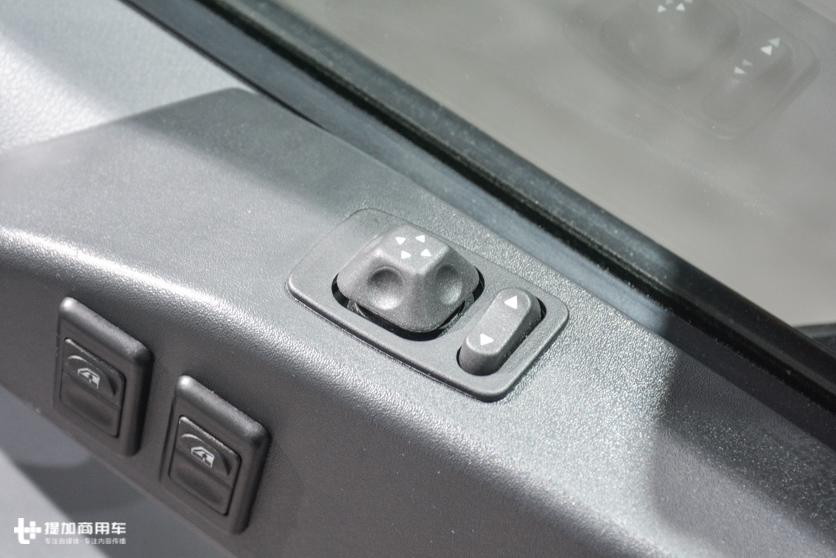 电动后视镜调节的位置正常一点,咦,廉价车型还有电动后视镜调节以及电加热功能,后视镜加热开关单独布置在空调开关边上。
