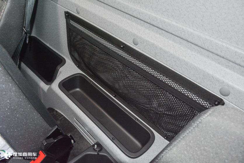 驾驶室后部的空间同样没有浪费,储物网兜和储物格占满了空余位置。