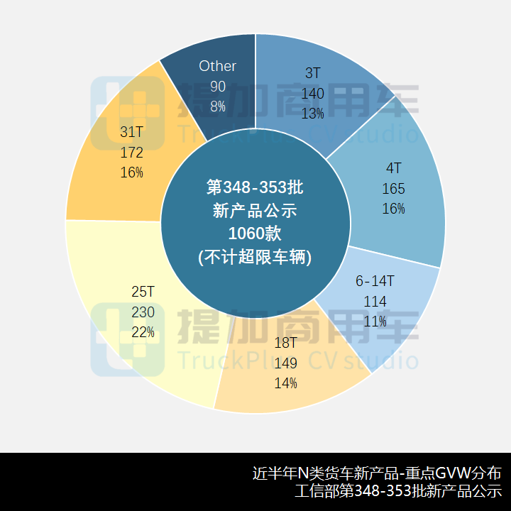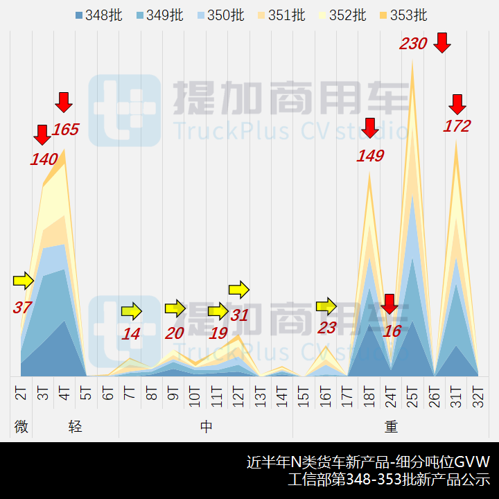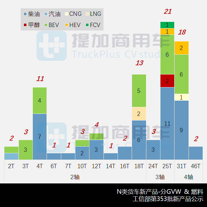 分GVW吨位和燃料类型来看,第353批新品公示中: