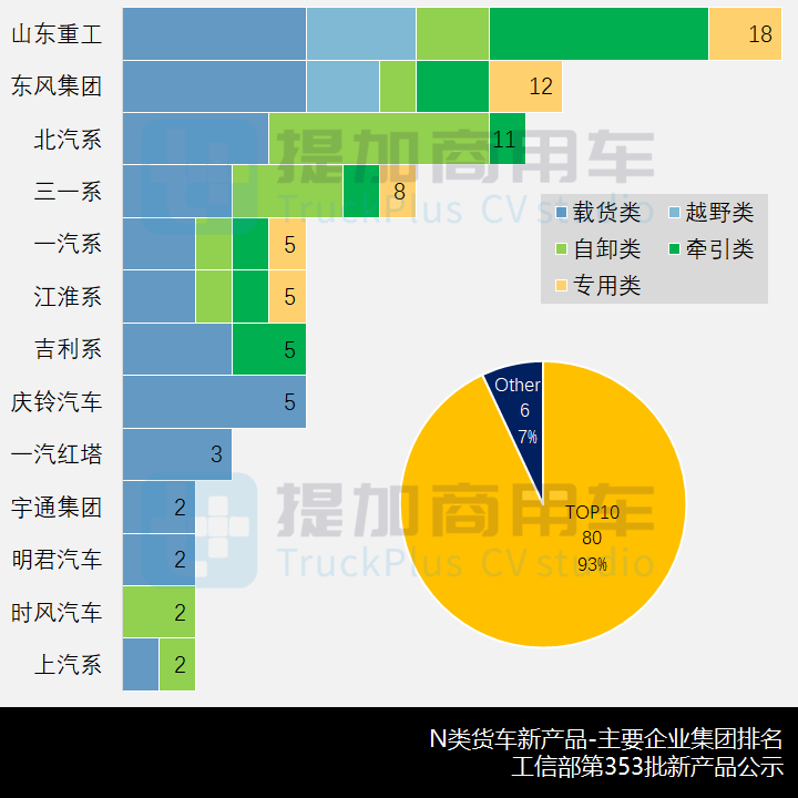 2月18日,工信部发布了第353批新产品公示的补充部分,共计140款汽车新品,经识别后包括4款N类货车基本型、2款M类客车基本型,以及4款商旅类、6款消防类、1款起重类等新品,笔者已将相关补充合并入整体数据库。