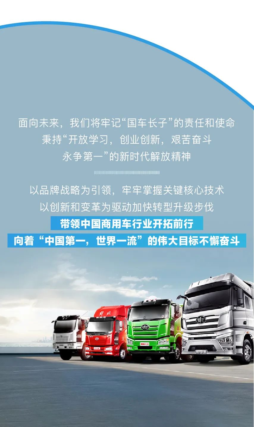 回首刚刚过去的2021年,一汽解放迎难而上、驭势而为,以行业第一的全年销量和品牌价值,诠释了中国商用车领航者的实力!如今,站在2022年的全新起点,一汽解放将踔厉奋发、笃行不怠,以精益求精的产品与至真至诚的服务,与用户携手并进,合力共赢,创造新的辉煌!