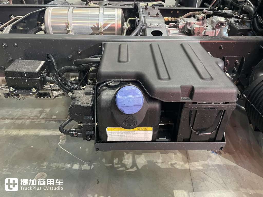 车辆采用12V电源(电气系统),在100AH电瓶旁边直接布置了一个尿素箱,且上下左右均有保护措施。紧凑型的布局,可针对后期二类底盘上装留出充足的改装空间,提高底盘的利用率。