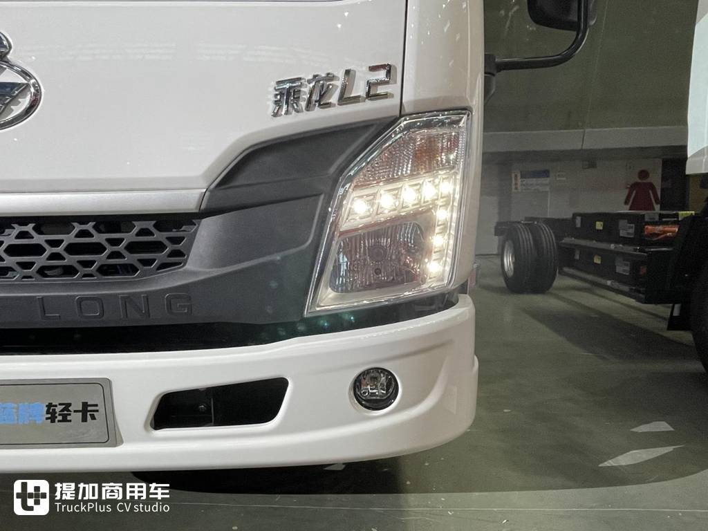 乘龙L2这款轻卡的外观设计依旧是乘龙的家族化造型,黑色中网与珍珠白车身撞色,并且和大灯的造型相呼应,设计整体性较强,在中网下方带有“CHENG LONG”的标识。