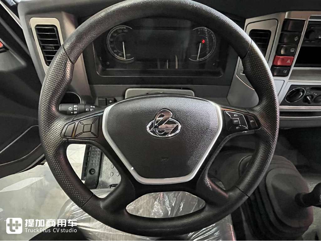 看这个方向盘是不是颇有乘用车的风格?乘龙L2使用的四幅式多功能方向盘外廓优化增加了握感和摩擦力,在方向盘上还集成有多功能按键,可对定速巡航进行控制。