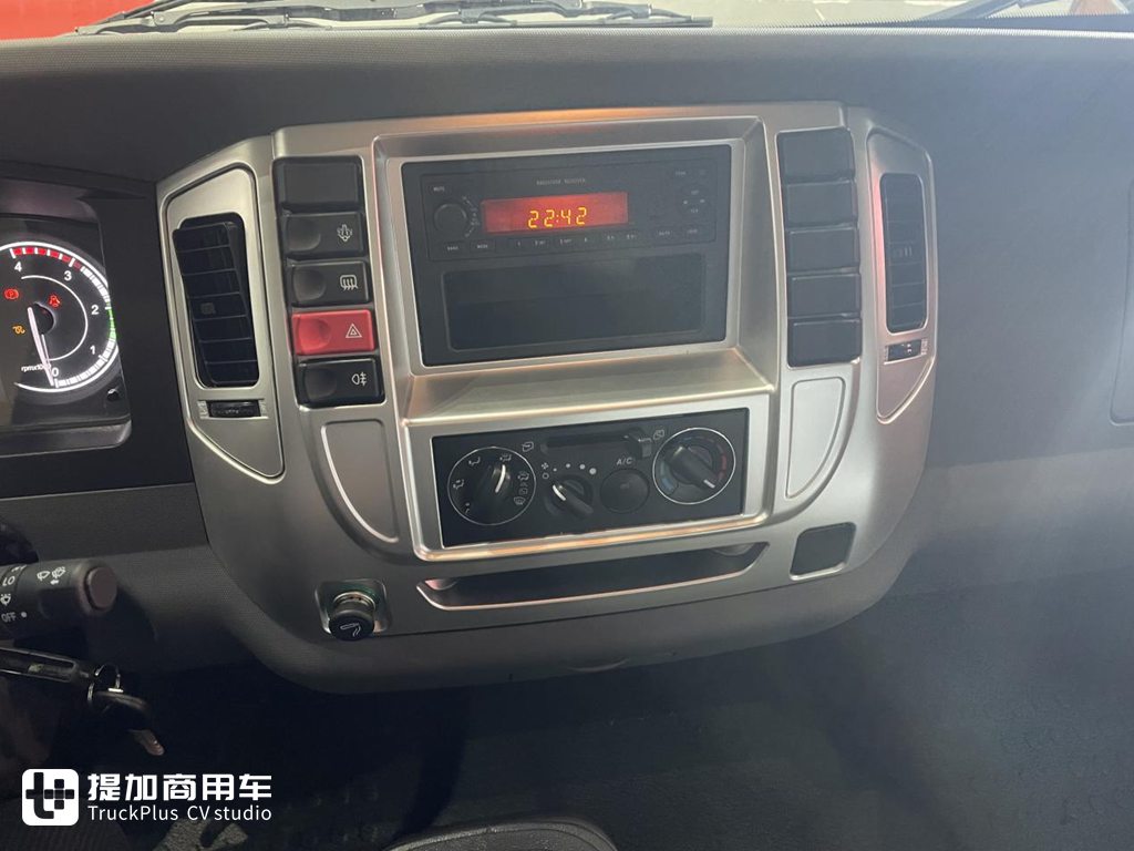 进入乘龙L2轻卡的驾驶室内,你会发现这辆轻卡的设计感是非常的好,横平竖直的工作台简单而又不简约。驾驶室内为贯通式设计,通道做的也比较大,加上宽体驾驶室的大尺寸,这辆车即便是坐上三个人也不会显得拥挤。