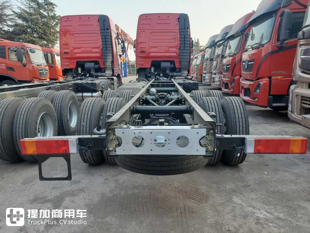 大梁上安装有两个铝合金材质的油箱,油箱的容量规格是600L+400L,共计1000升的总容量,这对于全国跑的卡友来说是非常友好的一个配置,不仅能增加车辆的续航能力,而且在便宜的时候把油加满,一趟下来还避免了不同地区油的差价。