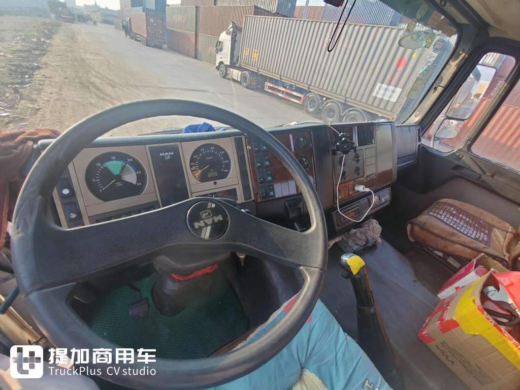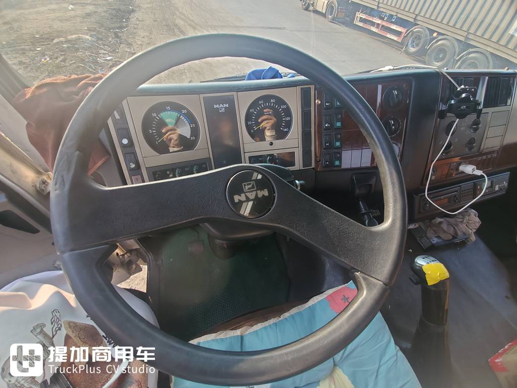 方向盘是二幅式的,中间的德国曼LOGO是喇叭的开关,仪表盘直接就是曼F2000的。
