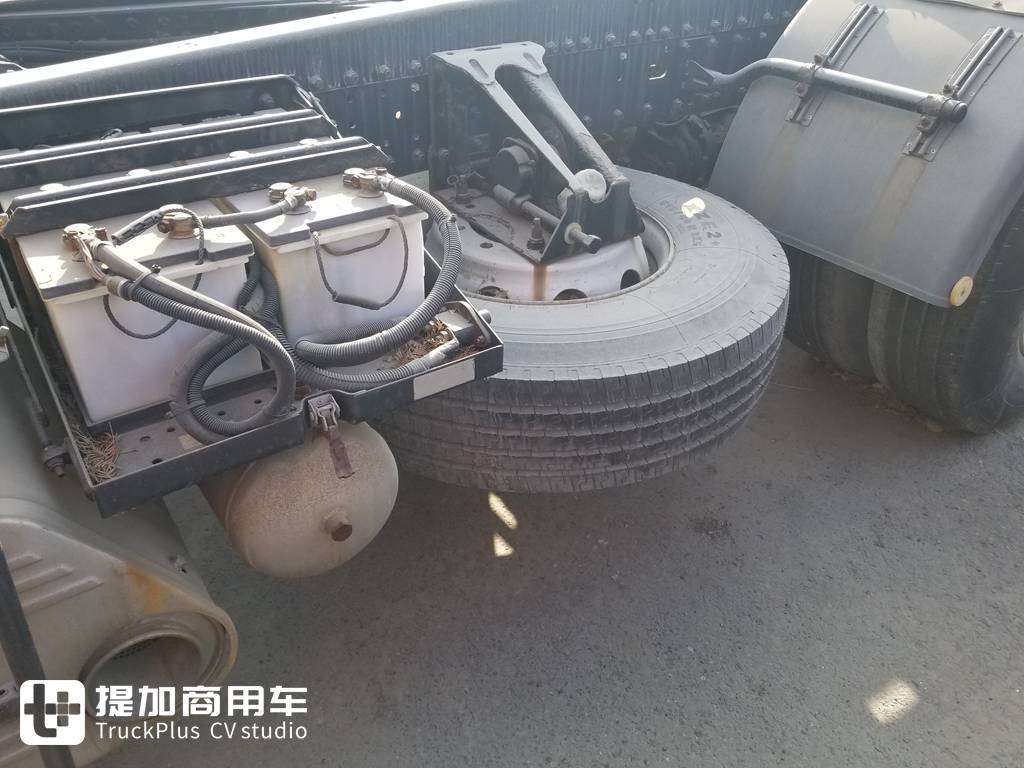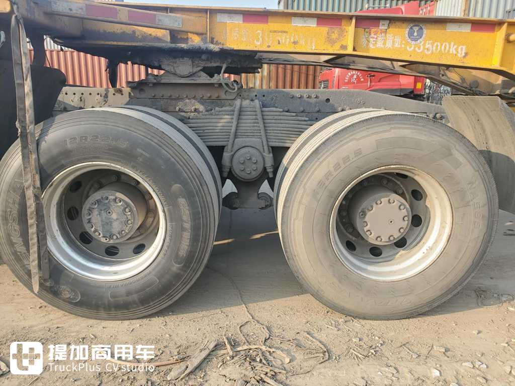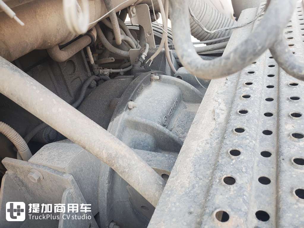 接着来看底盘,这个3500+1350的轴距是要比平常的牵引车看着长一些,这辆车的动力链采用的是潍柴+法士特+斯太尔轮减桥的组合,而最初CKD的车型则是曼机D2866+ZF16S+MAN 13T轮减桥的。