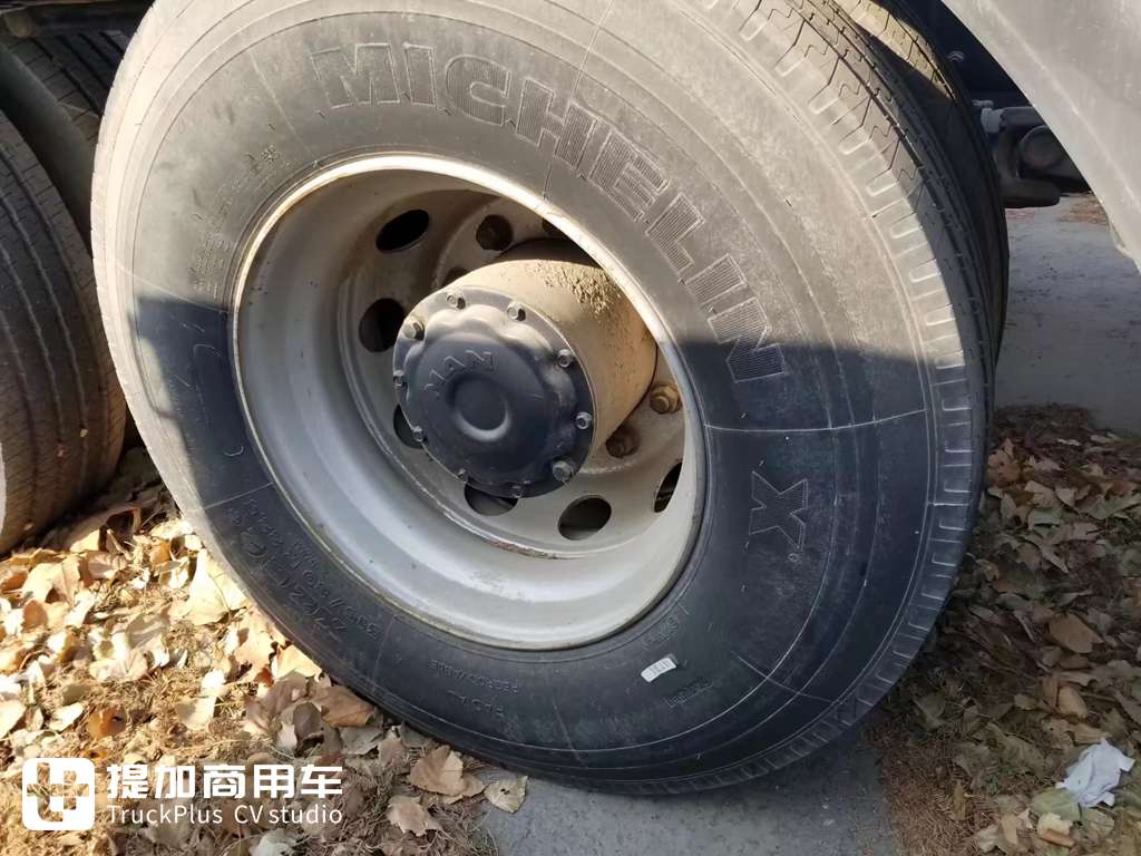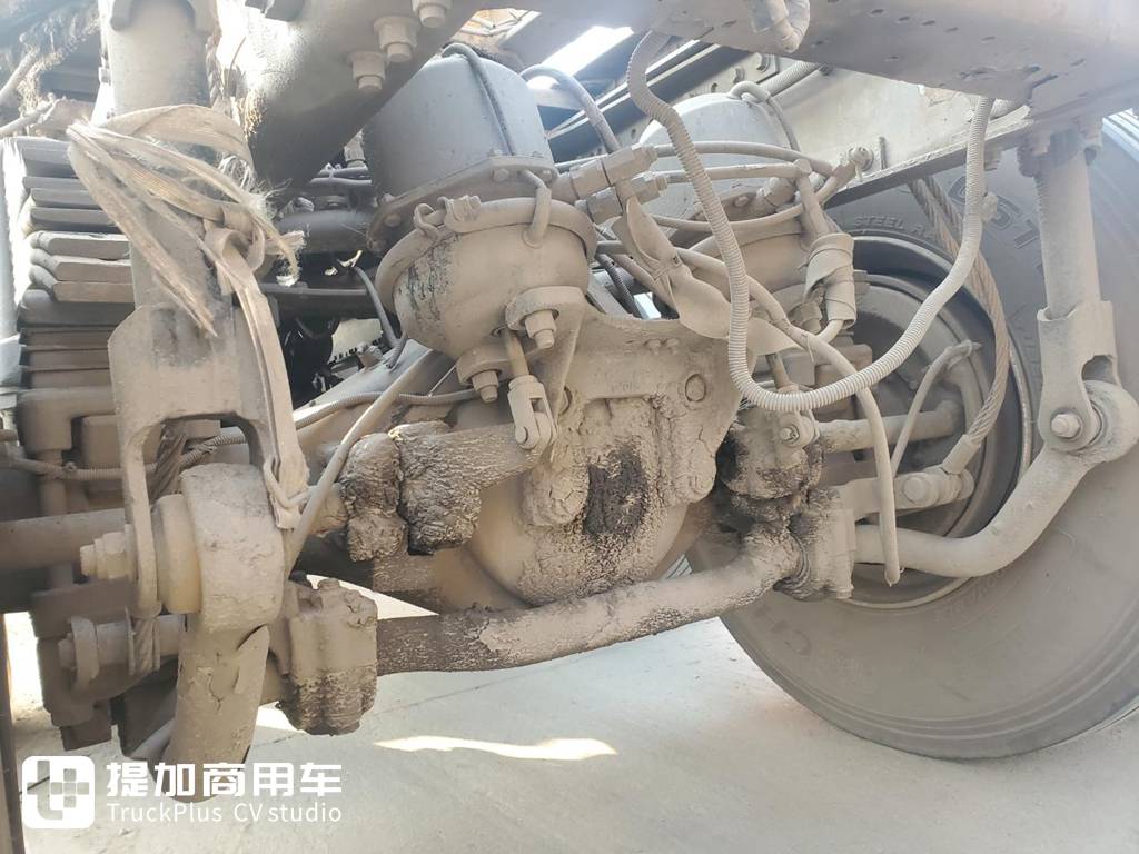这个曼动力链的青年曼卡实拍照片,后桥用的是来自德国曼的轮边减速桥,而且配的是315/70R22.5的轮胎,后桥5片高强度轻量化板簧,这样的配置在当时是非常的少见的。